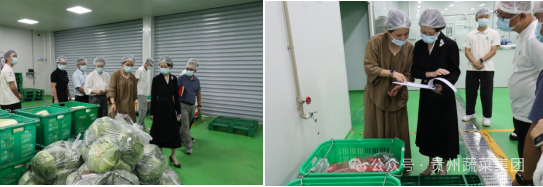 2025年9月17日,贵州省贵阳市政协副主席、白云区委书记步岚率区人民政府副区长刘咏松,区市场监督管理局、区教育局到贵州蔬菜集团有限公司下属贵蔬(白云)供应链服务有限公司(以下简称“白云公司”)开展调研,针对食材质量安全与规范化操作等相关内容进行指导。白云公司总经理孙卫芝、副总经理宋垚全程陪同。