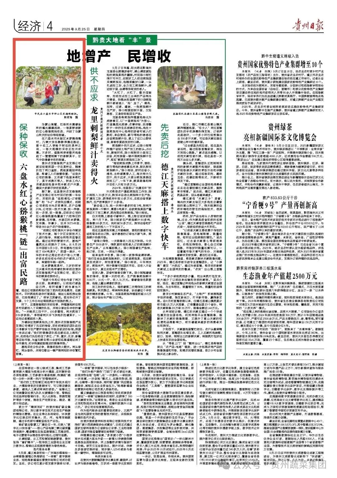 “前期公司和贵州大学合作制定了技术方案,每个片区安排技术工人进行指导,再配合网格员监督实施。通过这样的管理方式,基地产量就比从前提升了30%。从8月28日开园到9月9日,所有基地已经采收了694吨果子。”郑国一表示,今年的丰收让周边的农户信心大增,许多此前没有合作的农户都找上门来,希望明年能一起种。