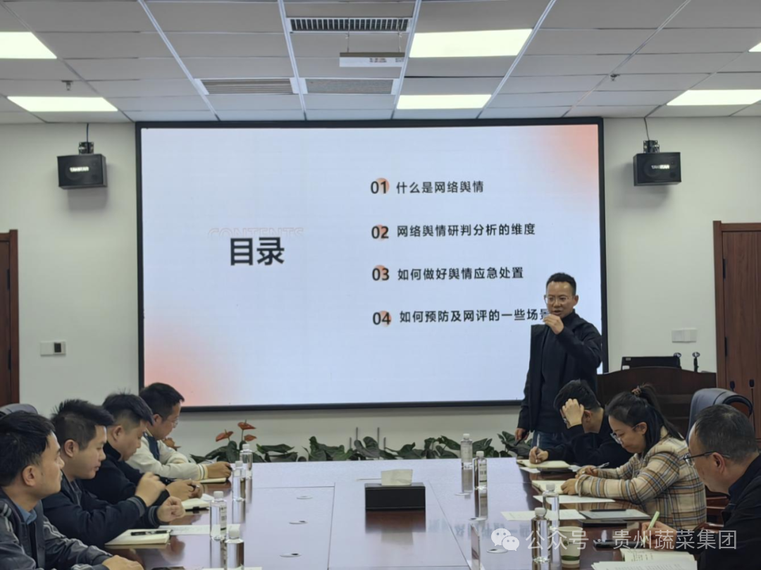 为适应信息传播变革趋势,全面提升宣传工作人员的专业素养与舆情应对能力,10月29日,贵州蔬菜集团有限公司(以下简称蔬菜集团)组织开展“宣传素养提升专题培训”。培训特邀贵州财经大学副教授白奇峰进行专题授课,聚焦网络舆情分析研判与网评工具应用内容,强化蔬菜集团舆论引导水平,为高质量发展营造良好环境。蔬菜集团党委委员、财务总监李州银主持培训会议。